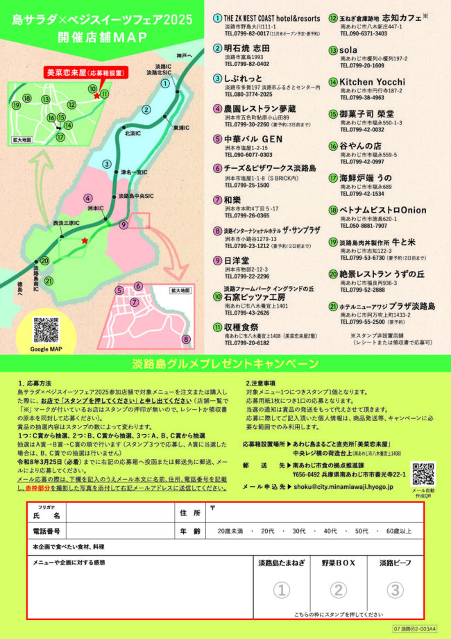 (3)今年も「スタンプラリー」を実施。スタンプを集めて淡路ビーフ、野菜BOX、淡路島たまねぎ(新たま)をGETしよう!!