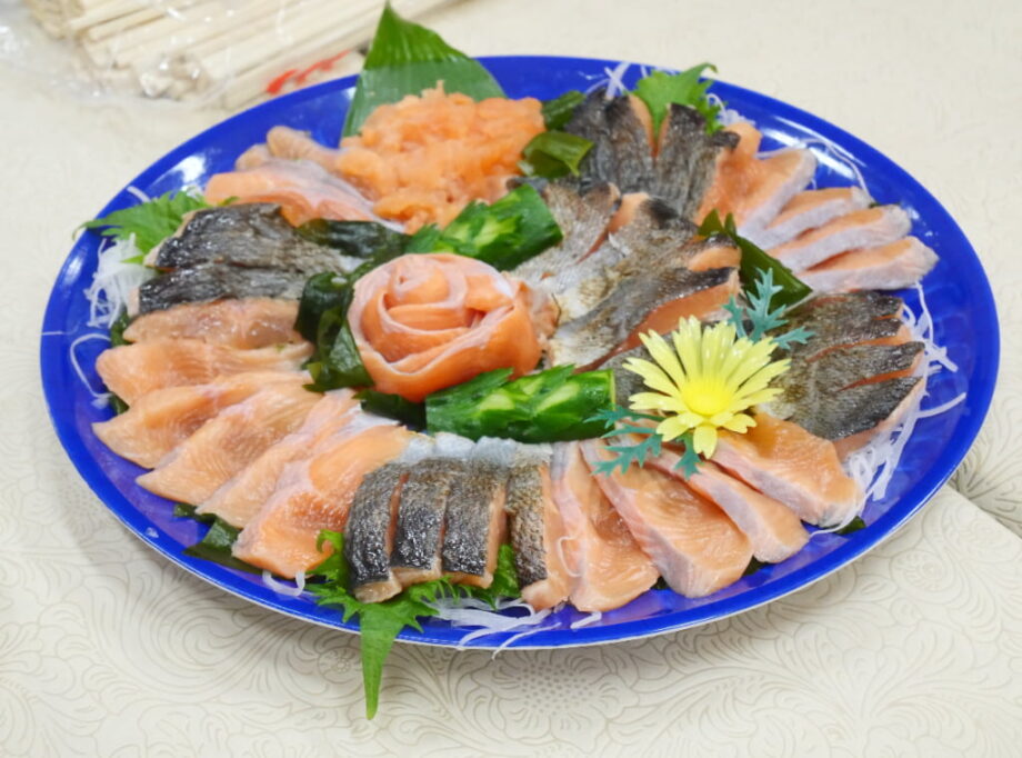 ・天然物は寄生虫(アニサキス)の心配があるので、水揚げしてすぐに冷凍するか、焼き魚で食べるが、養殖の淡路島サクラマスはアニサキスがいないので生(刺身)で食べられます。